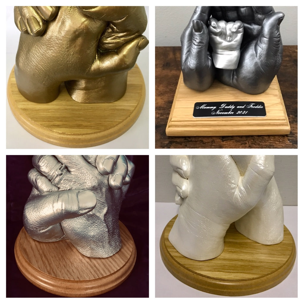 Solid wood bevelled edge plinths are available, on which to display your handclasp sculpture. All plinths come with an engraved plaque which can display your family's name on, the date, or a short quote.