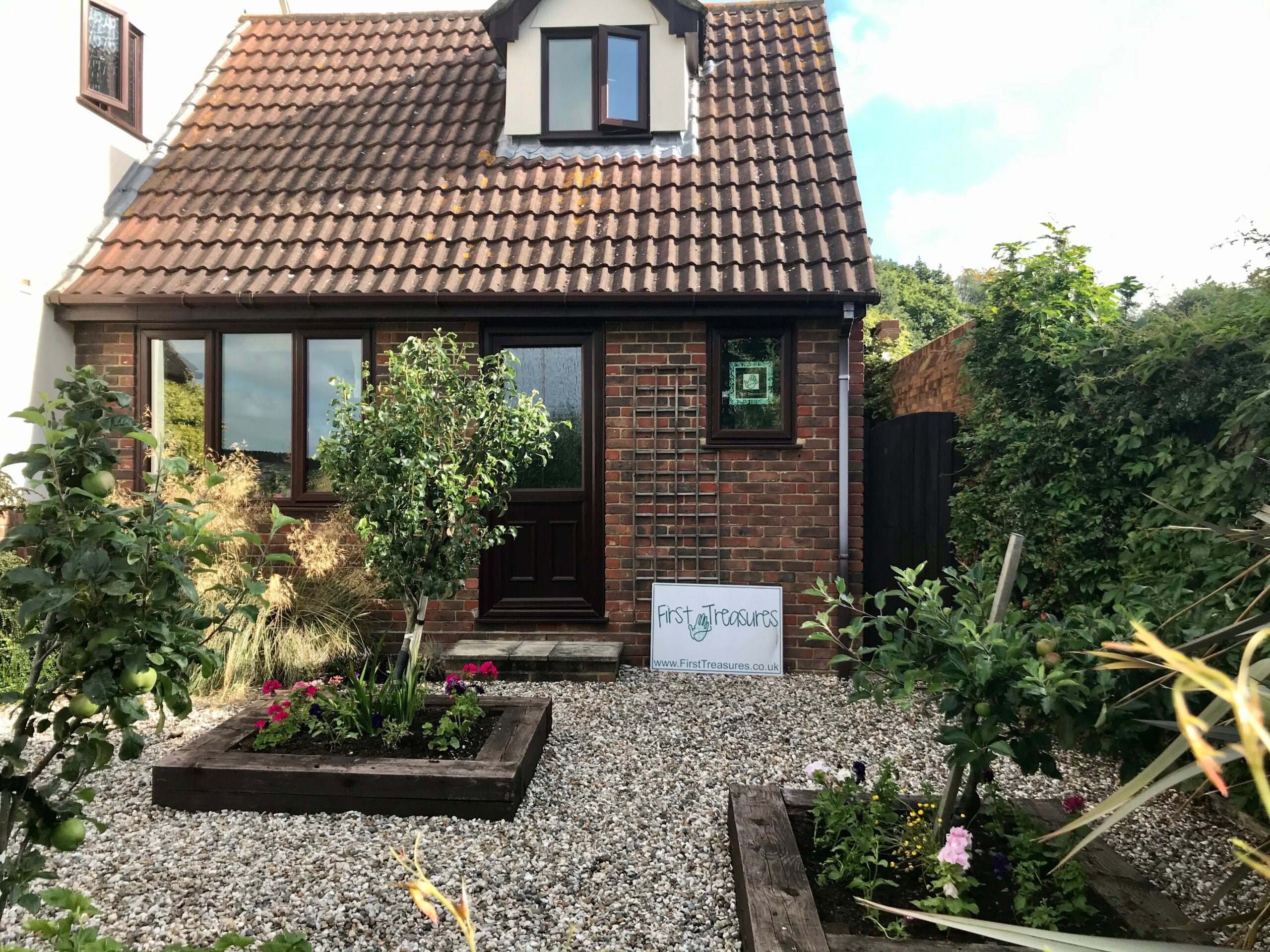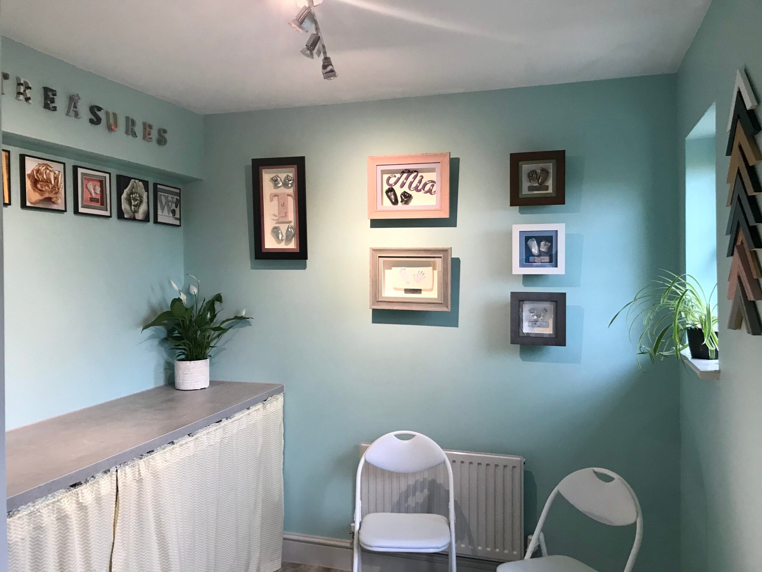 The First Treasures studio is tucked away at the end of a private drive in Boreham, Chelmsford. There’s plenty of parking, and the studio door is just a few steps away, through a small enclosed courtyard next to the customer spaces.