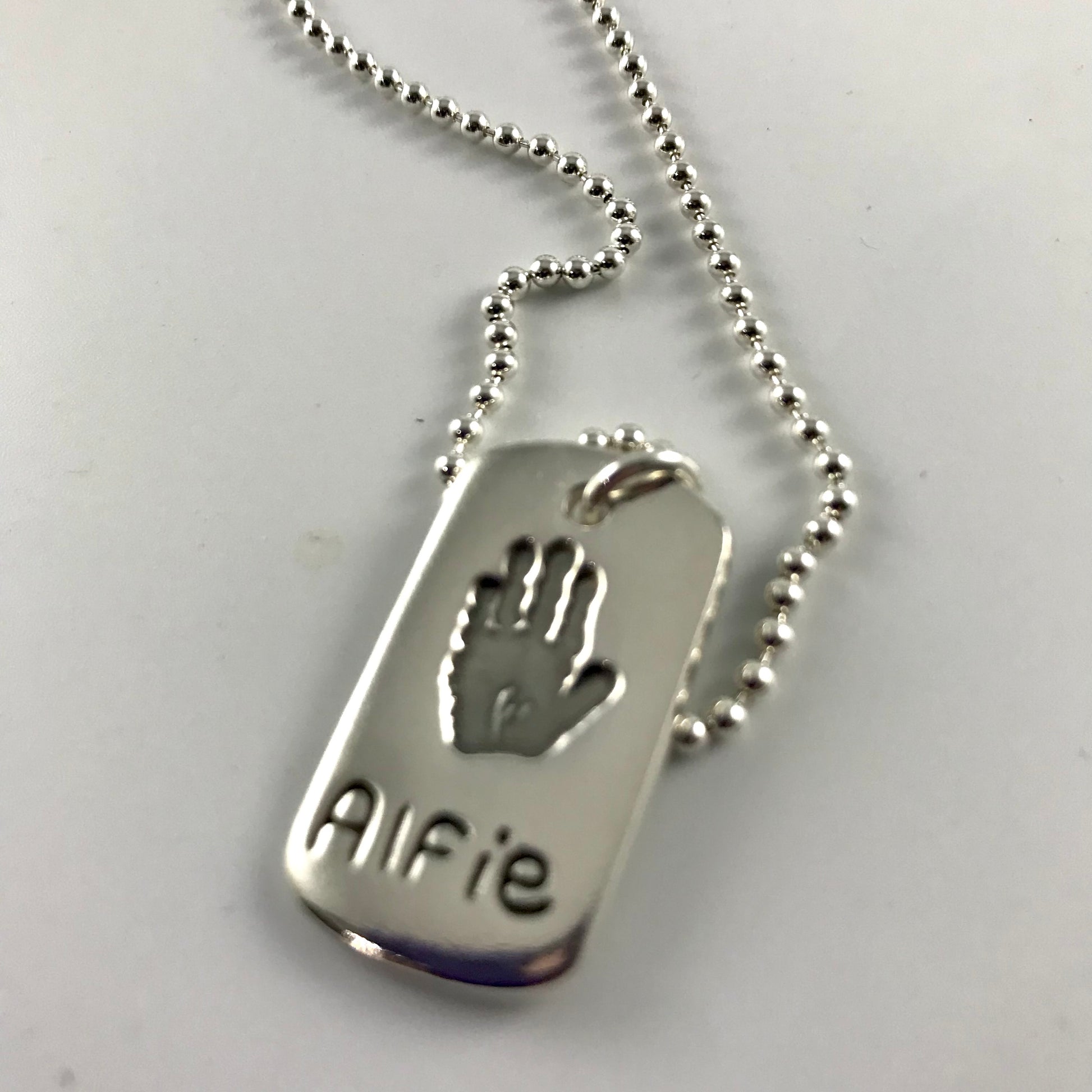 Men’s Medium Dog Tag Hand and Footprint Necklace with 1 or 2 Prints